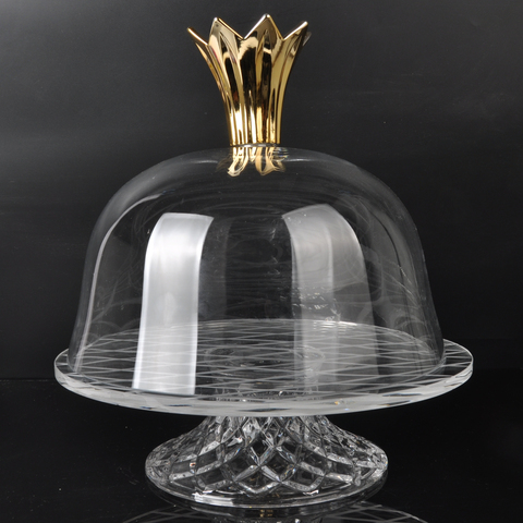 Hot Sales Glass Cake Display Glass Plate Buffet Cake Snack Display Stand With Dome